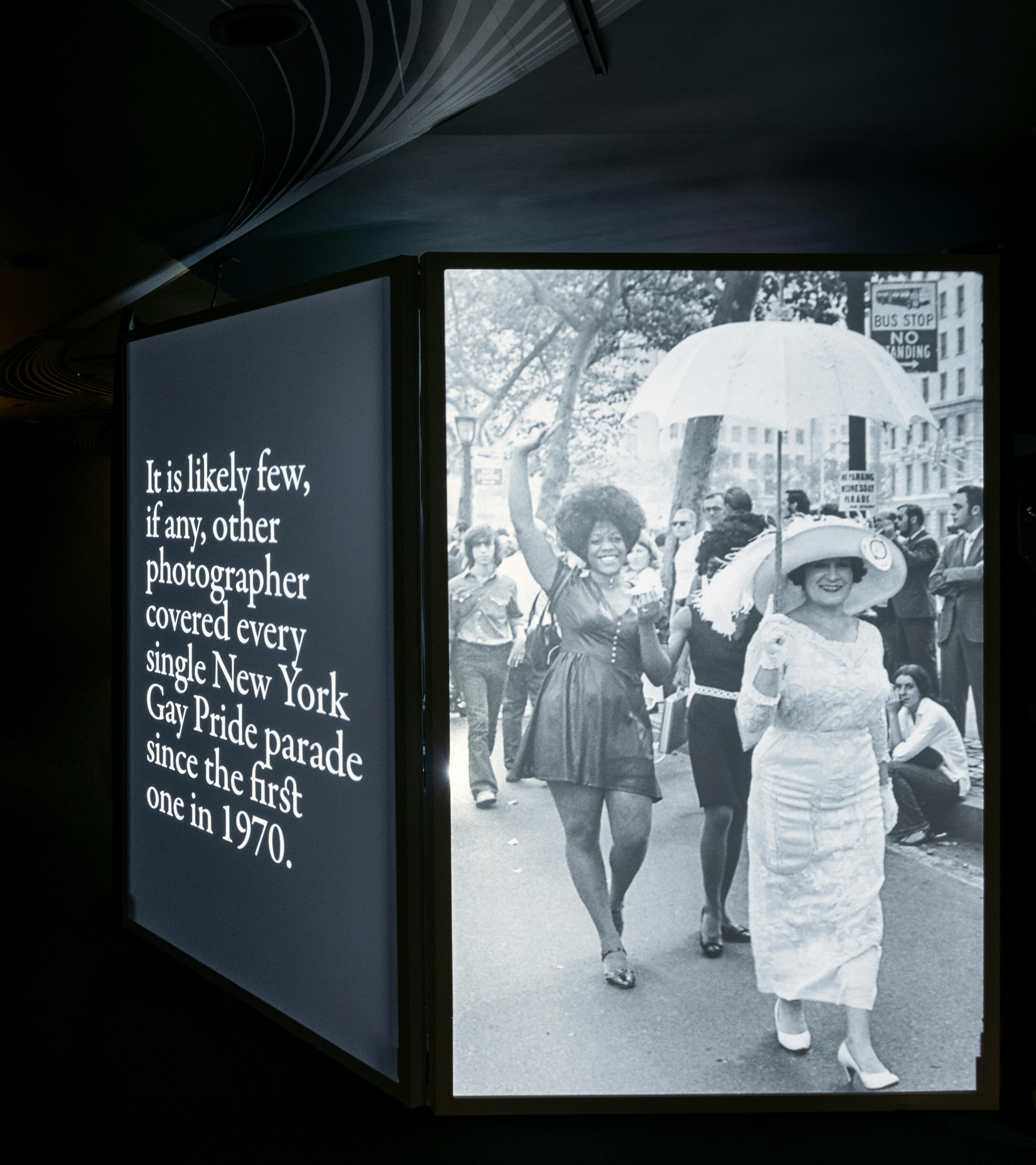 Along the journey, guests can pose on a simulated electric city crosswalk where Cunningham took many of his photographs, or take a seat on a bench made of milk crates and a foam mattress—a nod to the photographer’s bed in his Carnegie Hall studio apartment.