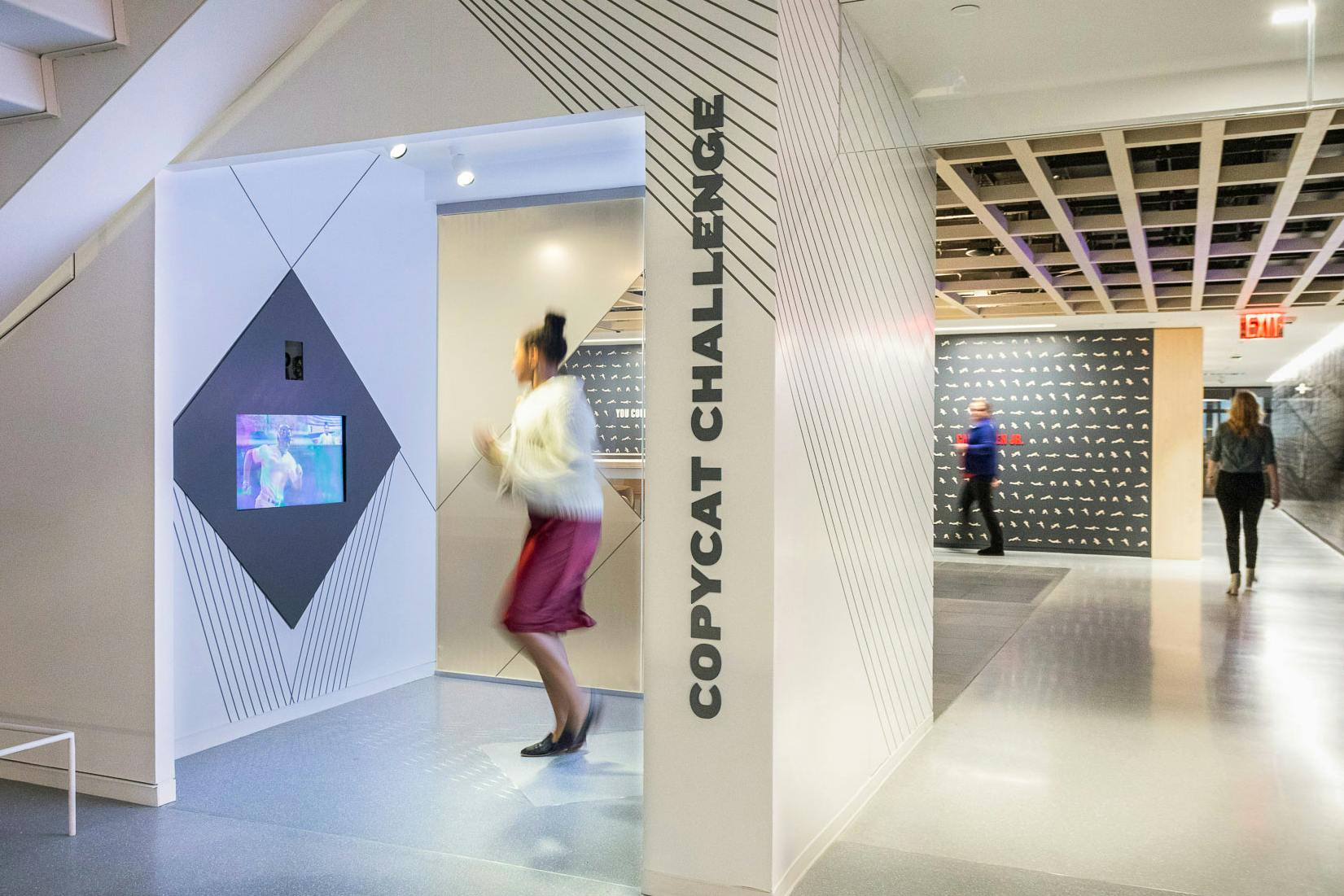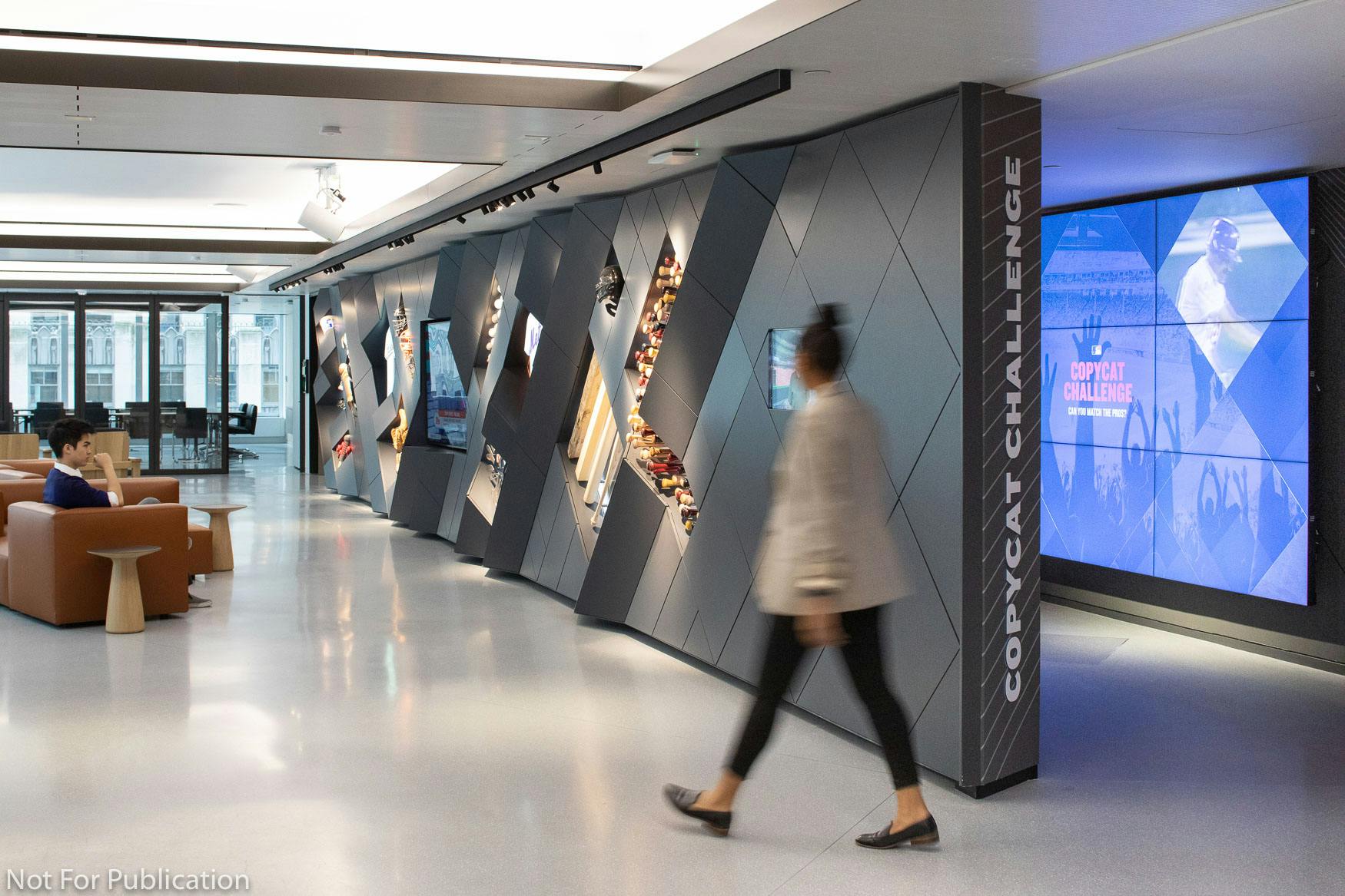 The fifth-floor concourse area hosts an interactive photobooth where users can imitate the game’s hottest stars, funniest moments and most exciting plays. The results are packaged for seamless social media posting and appear on displays throughout the office.