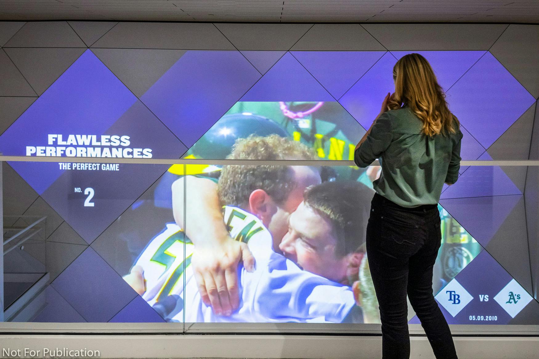 A series of media interventions capture the excitement of the game for employees—the ultimate fans—and visitors. Seven real time and interactive media experiences showcase the sport’s greatest players and memorable highlights. Each floor is themed with a different gameplay element such as fielding, hitting or pitching, with environmental graphics and physical elements that tell the story of timeless franchises and legendary heroes.