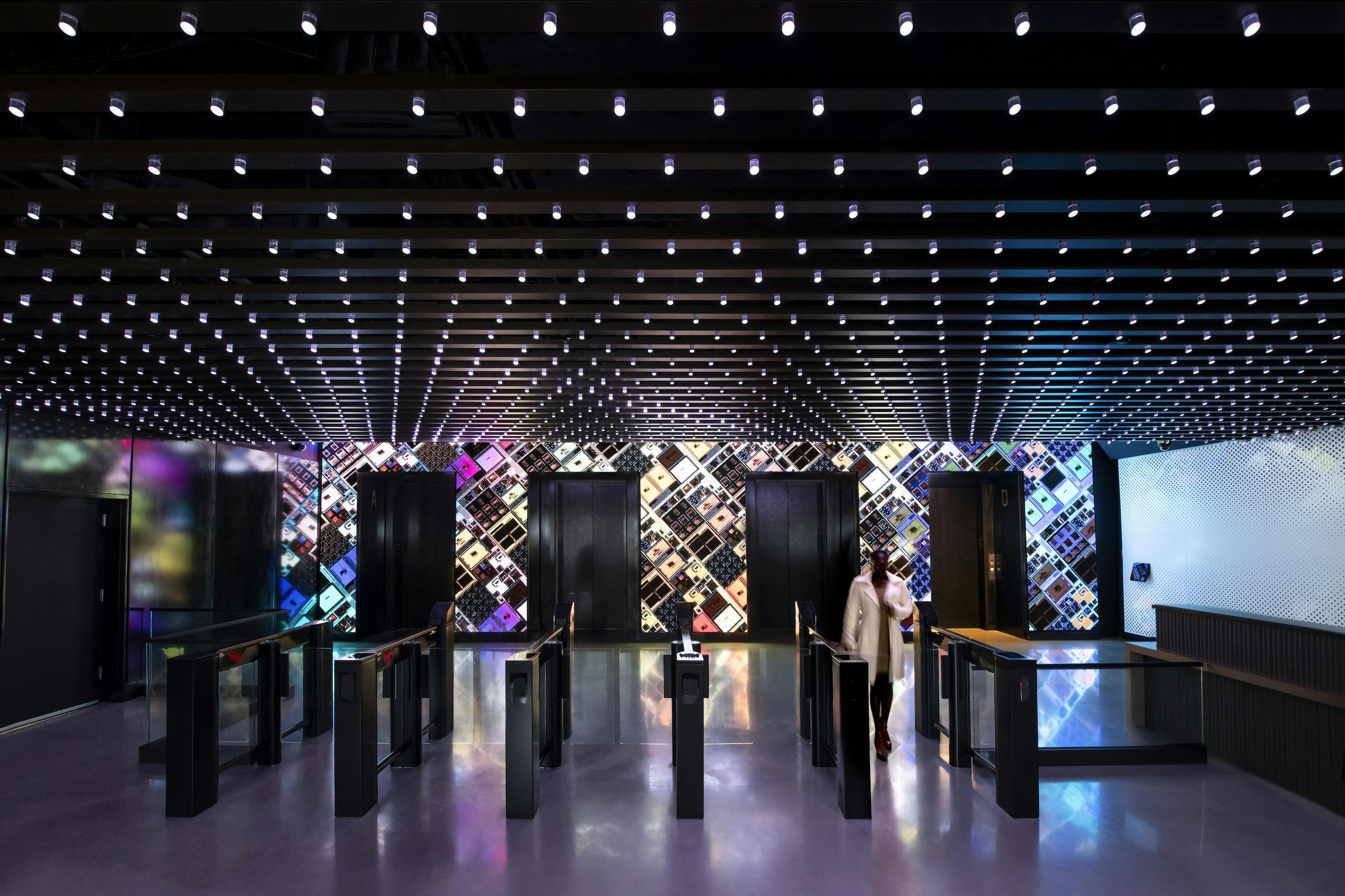 Various media modes in both the skybox and the ground floor lobby allow for the display of custom or thematic content.